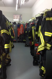 In der Fahrzeughalle und im Ankleideraum war die Luft schon besser. Wir fanden heraus, dass bei der Feuerwehr offenbar auch ein gepflegtes Aussehen wichtig ist, denn im Spint ließen sich neben den Anziehsachen auch Schuhcreme und eine Haarbürste finden 🙂
